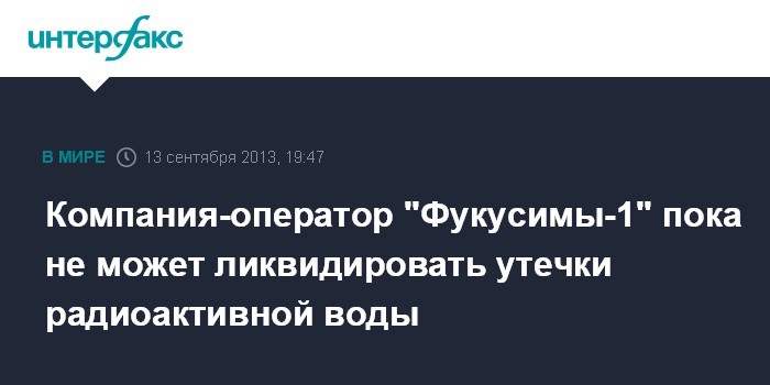 Токио. 13 сентября. INTERFAX.RU - Высокопоставленный представитель компании-оператора аварийной японской АЭС "Фукусима-1" TEPCO Кацухико Ямасита признал, что ситуация с утечками радиоактивной воды пока не поддается контролю, сообщает в пятницу местный телеканал NHK.