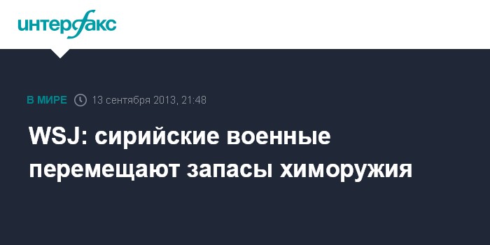 Вашингтон. 13 сентября. INTERFAX.RU - Элитное сирийское армейское подразделение номер 450 распределяет запасы химоружия по 50 различным объектам на территории страны, сообщает в пятницу американская газета Wall Street Journal со ссылкой на источники в США и на Ближнем Востоке.