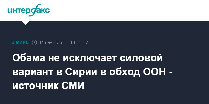 "Господин Обама резервирует за собой право отдать приказ о нанесении Америкой военного удара по Сирии без поддержки со стороны ООН, если Сирия не выполнит свои обязательства", - пишет "Нью-Йорк таймс", ссылаясь на заявление американского чиновника.