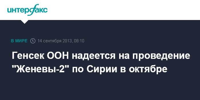 Нью-Йорк (ООН). 14 сентября. ИНТЕРФАКС - Генеральный секретарь ООН Пан Ги Мун заявил, что, по его мнению, международная конференция по Сирии "Женева-2" может состояться в октябре 2013 года.