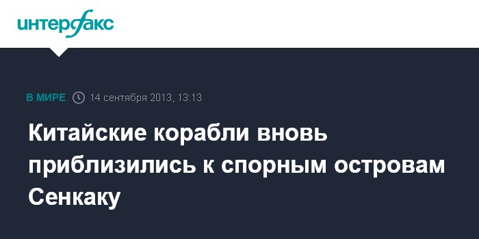 Токио. 14 сентября. INTERFAX.RU - Четыре корабля ВМС КНР вошли в акваторию спорных островов Сенкаку (китайское название Дяоюйдао), сообщает в субботу японская береговая охрана.