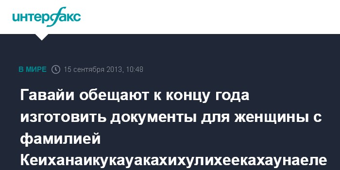 Гавайи обещают к концу года изготовить документы для женщины с фамилией Кеиханаикукауакахихулихеекахаунаеле
