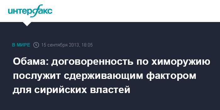 "Моя цель заключается в том, чтобы не повторилось то, что произошло 21 августа (когда близ Дамаска, вероятно, было применено химическое оружие - ИФ). И у нас есть возможность сделать так, чтобы этого вновь не случилось", - заявил президент США.