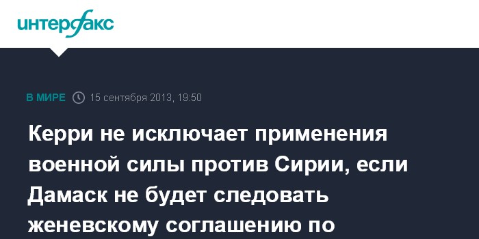 Керри не исключает применения военной силы против Сирии, если Дамаск не будет следовать женевскому соглашению по химоружию