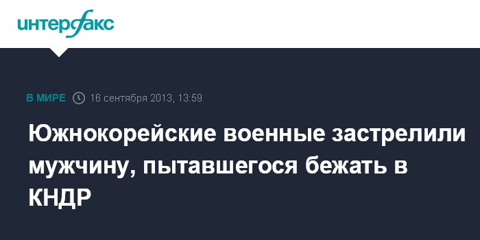 Сеул. 16 сентября. INTERFAX.RU - Силы безопасности Южной Кореи после нескольких предупреждений застрелили мужчину, пытавшегося переплыть пограничную реку Имджин и попасть в КНДР, говорится в заявлении министерства обороны страны, распространенном в понедельник.