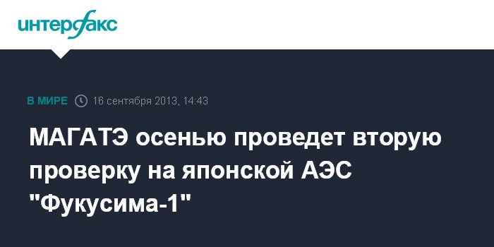 Вена. 16 сентября. INTERFAX.RU - Группа экспертов МАГАТЭ проведет осенью вторую проверку на японской АЭС "Фукусима-1", заявил в понедельник гендиректор МАГАТЭ Юкия Амано, выступая на 57-й сессии генеральной конференции агентства.