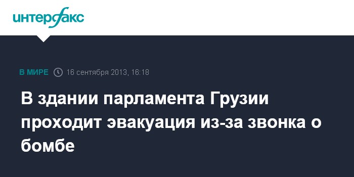 Тбилиси. 16 сентября. INTERFAX.RU - Из здания парламента Грузии в городе Кутаиси эвакуируют депутатов, сотрудников и посетителей в связи с анонимным звонком о заложенной в здании бомбе.