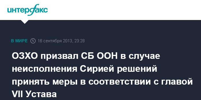 ОЗХО призвал СБ ООН в случае неисполнения Сирией решений принять меры в соответствии с главой VII Устава