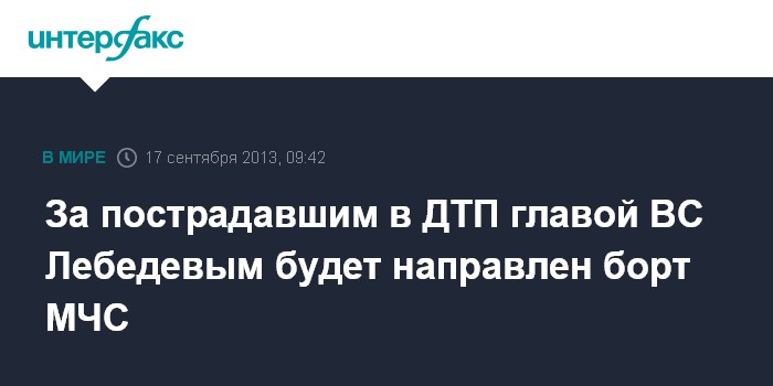 За пострадавшим в ДТП главой ВС Лебедевым будет направлен борт МЧС