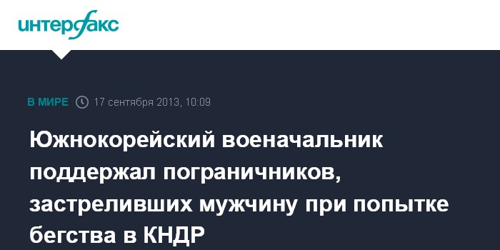 Сеул. 17 сентября. INTERFAX.RU - Южнокорейские пограничники, которые накануне застрелили пытавшегося бежать в КНДР мужчину, действовали в соответствии с инструкциями, заявил во вторник журналистам генерал армии Южной Кореи Чо Чен Сул.