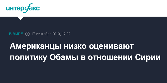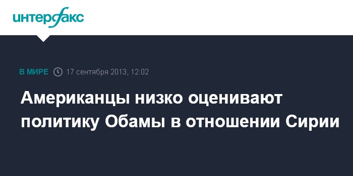 Только 36 % опрошенных одобряют подход Обамы к ситуации в Сирии. Неодобрительно отзываются о его курсе 53%.