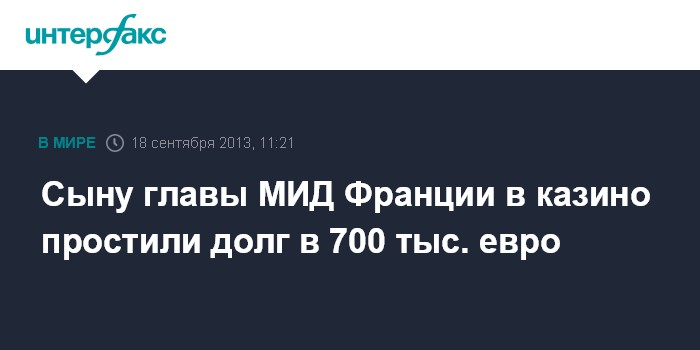 Сыну главы МИД Франции в казино простили долг в 700 тыс. евро