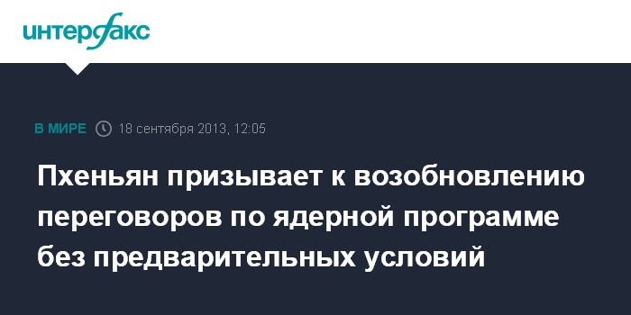 Пхеньян призывает к возобновлению переговоров по ядерной программе без предварительных условий