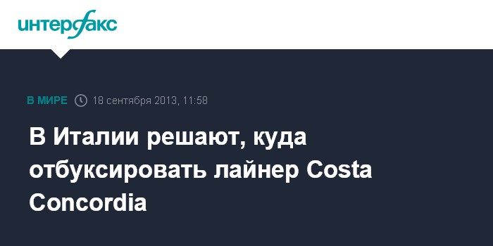 Рим. 18 сентября. ИНТЕРФАКС - Региональные власти Италии ведут борьбу за право провести демонтаж аварийного круизного лайнера Costa Concordia, сообщает в среду итальянская газета Corrierre della Serra.