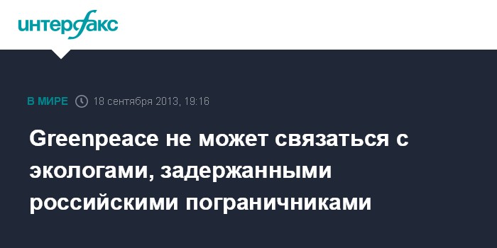 Москва. 18 сентября. INTERFAX.RU - В российском отделении Greenpeace заявили, что с утра среды им не удается связаться с двумя экологами, которые были задержаны российскими пограничниками в Печорском море после попытки проникновения на нефтедобывающую платформу "Приразломная".