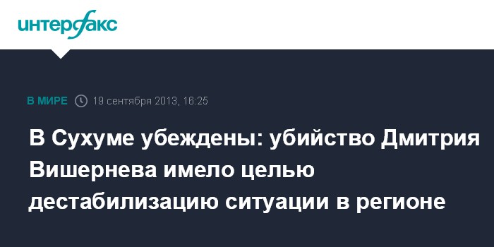 Сухум. 19 сентября. INTERFAX.RU - Власти Абхазии считают, что внутренние проблемы не могли стать причиной убийства российского дипломата Дмитрия Вишернева.