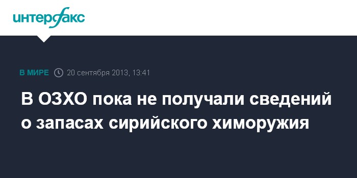Гаага. 20 сентября. INTERFAX.RU - В штаб-квартире Организации по запрещению химического оружия (ОЗХИ) в Гааге пока не получали данных об арсеналах сирийского химоружия, но надеются, что они будут представлены к предстоящим выходным, сообщил в интервью "Интерфаксу" глава службы по связям с общественностью и СМИ Майкл Лухэн.
