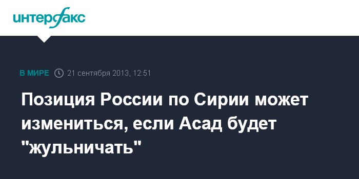 Позиция России по Сирии может измениться, если Асад будет "жульничать"
