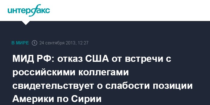 МИД РФ: отказ США от встречи с российскими коллегами свидетельствует о слабости позиции Америки по Сирии