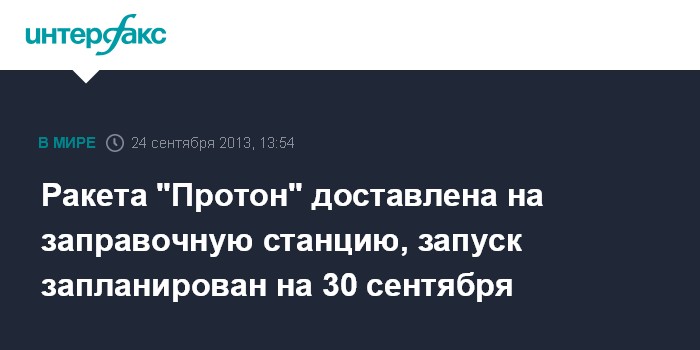 В свою очередь, источник "Интерфакса " в ракетно-космической отрасли сообщил, что первый после аварии 2 июля запуск ракеты "Протон-М" состоится в 1.38 МСК 30 сентября.