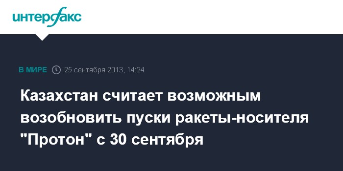 Астана. 25 сентября. INTERFAX.RU - Казахстанская сторона согласилась с датой запуска ракеты-носителя "Протон" с космодрома Байконур.