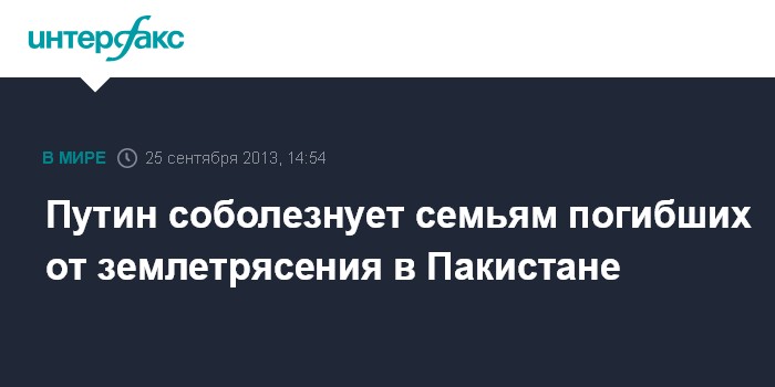 Путин соболезнует семьям погибших от землетрясения в Пакистане