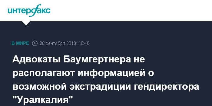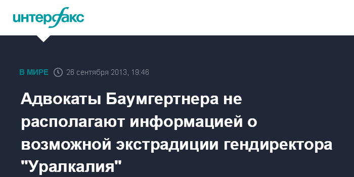Адвокаты Баумгертнера не располагают информацией о возможной экстрадиции гендиректора "Уралкалия"