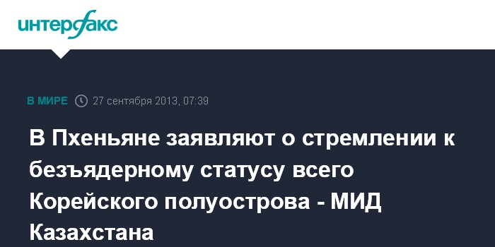 В Пхеньяне заявляют о стремлении к безъядерному статусу всего Корейского полуострова - МИД Казахстана