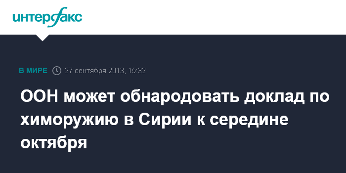 Нью-Йорк (ООН). 27 сентября. INTERFAX.RU - ООН планирует распространить доклад группы экспертов Оке Селлстрема о применении химического оружия в Сирии к середине октября.
