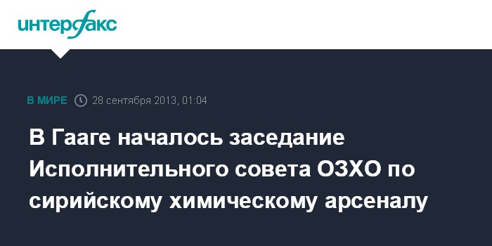 Брюссель. 28 сентября. INTERFAX.RU - В штаб-квартире Организации по запрещению химического оружия в Гааге начал заседать Исполнительный совет ОЗХО по вопросу о плане ликвидации запасов химического оружия Сирии, сообщил "Интерфаксу" глава службы по связям с общественностью и СМИ организации Майкл Лухэн.