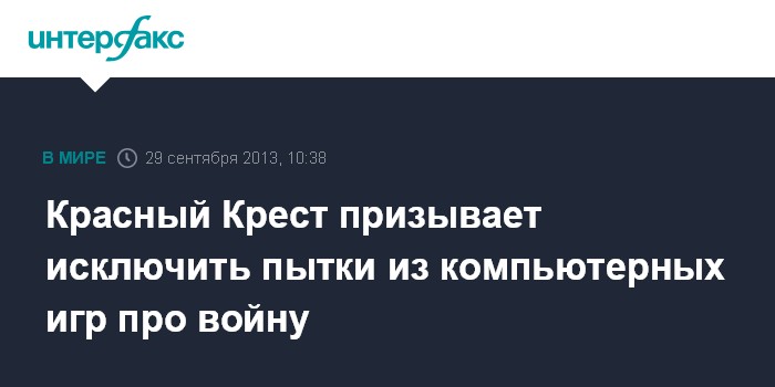 Лондон. 29 сентября. INTERFAX.RU- Международный комитет Красного Креста просит создателей компьютерных игр, посвященных военным конфликтам, вписать в их правила положения Женевских конвенций о нормах ведения боевых действий, сообщает британская радиовещательная корпорация BBC.