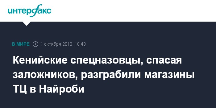 Лондон. 1 октября. INTERFAX.RU - Сотрудники сил безопасности Кении занимались грабежом в магазинах торгового центра в Найроби во время операции по освобождению заложников, передает во вторник британский телеканал Sky News.