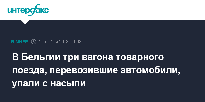Брюссель. 1 октября. INTERFAX.RU - Три вагона товарного поезда, груженные новыми автомобилями "Фиат", отцепились утром во вторник от состава и упали под откос с высоты в 20 м в бельгийской провинции Лимбург, сообщили СМИ Бельгии.