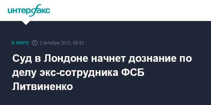 Лондон. 2 октября. INTERFAX.RU - Британский коронерский суд в Лондоне, как ожидается, в среду продолжит слушания по делу бывшего сотрудника ФСБ Александра Литвиненко.