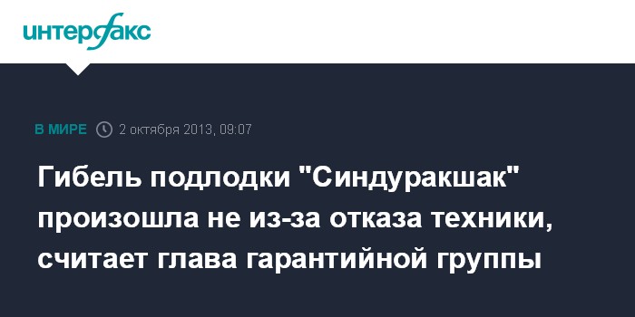 Гибель подлодки "Синдуракшак" произошла не из-за отказа техники, считает глава гарантийной группы