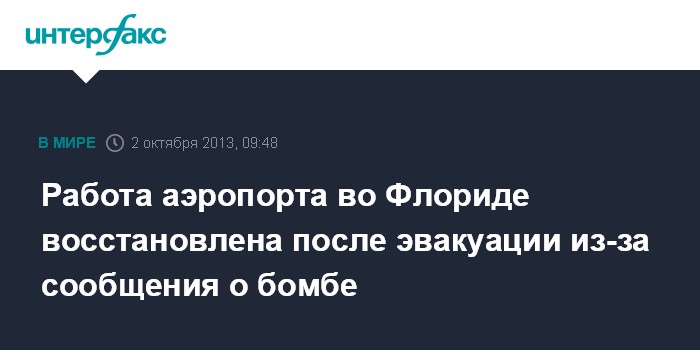 Работа аэропорта во Флориде восстановлена после эвакуации из-за сообщения о бомбе