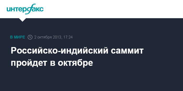 Российско-индийский саммит пройдет в октябре