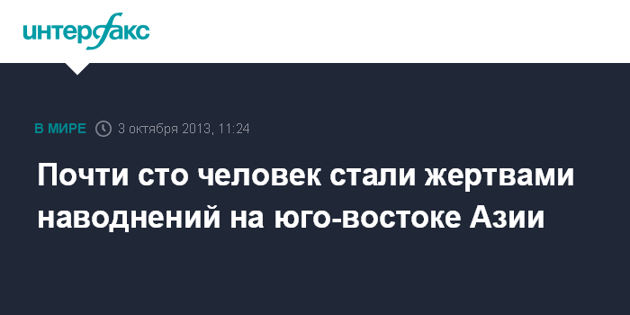 Бангкок. 3 октября. INTERFAX.RU - По меньшей мере 96 человек погибли и около 3 млн пострадали в результате наводнений в ряде азиатских стран, сообщает в четверг Международный комитет Красного креста.