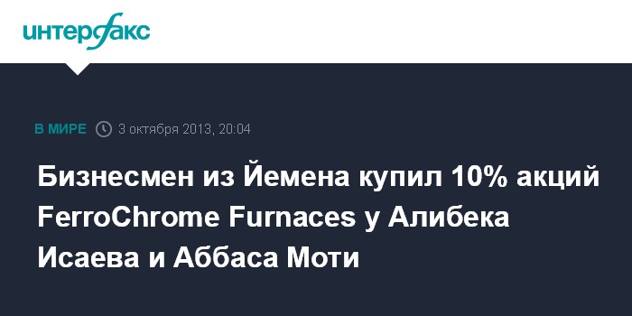 Бизнесмен из Йемена купил 10% акций FerroChrome Furnaces у Алибека Исаева и Аббаса Моти