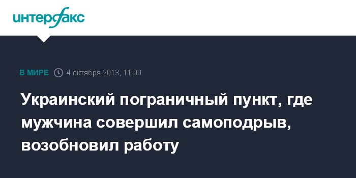 Киев. 4 октября. INTERFAX.RU - Пункт пропуска "Бачевск" Сумской области на украинско-российской границе, где в пятницу рано утром нарушитель погранрежима подорвал себя, возобновил работу.