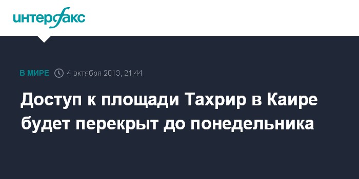 Каир. 4 октября. INTERFAX.RU - Силы безопасности Египта планируют до утра понедельника оставить перекрытым доступ в район вокруг президентского дворца и площадь Тахрир в Каире, сообщает местное агентство MENA со ссылкой на военный источник.