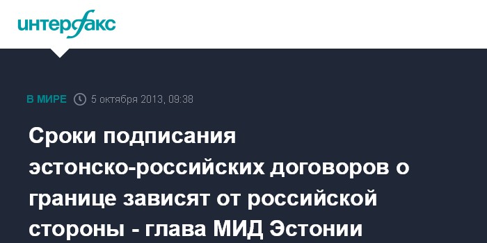 Таллин. 5 октября. ИНТЕРФАКС - Министр иностранных дел Эстонии Урмас Паэт (Urmas Paet) считает, что сроки подписания эстонско-российских договоров о сухопутной и морской границе зависит от российской стороны.