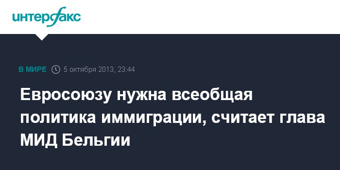 Брюссель. 5 октября. ИНТЕРФАКС - Трагедия нелегальных иммигрантов, утонувших близ итальянского острова Лампедуза, подчеркивает необходимость "всеобщей, солидарной и взвешенной европейской политики иммиграции", заявил в субботу в специальном коммюнике министр иностранных дел Бельгии Дидье Рейндерс.