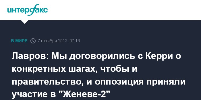 "Мы договорились предпринять конкретные шаги для того, чтобы правительство и оппозиция прибыли на эту конференцию с полной готовностью в полной мере выполнить предложения, которые содержатся в Женевском коммюнике от 30 июня прошлого года", - заявил глава МИД РФ Сергей Лавров в понедельник на Бали по итогам переговоров с госсекретарем США Джоном Керри.