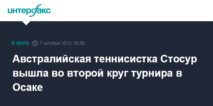 Осака. 7 октября. INTERFAX.RU - В матче первого круга теннисного турнира HP Open в японской Осаке австралийка Саманта Стосур в двух сетах обыграла шведку Юханну Ларссон, сообщает "Спорт-Экспресс".