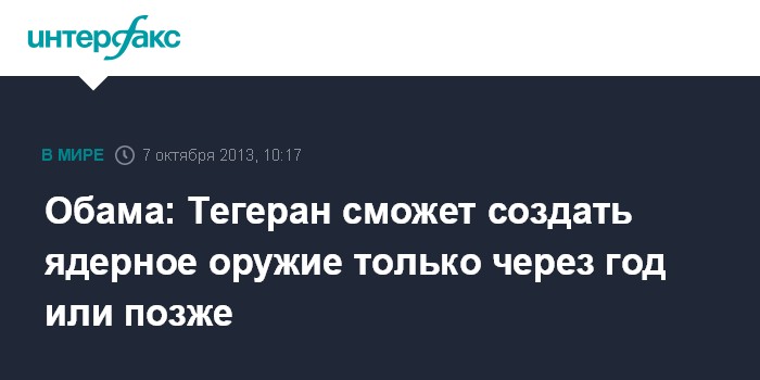 Вашингтон. 7 октября. INTERFAX.RU - Данные американских спецслужб показывают, что Иран будет способен создать ядерное оружие только через год или больше, заявил президент США Барак Обама в интервью AP.