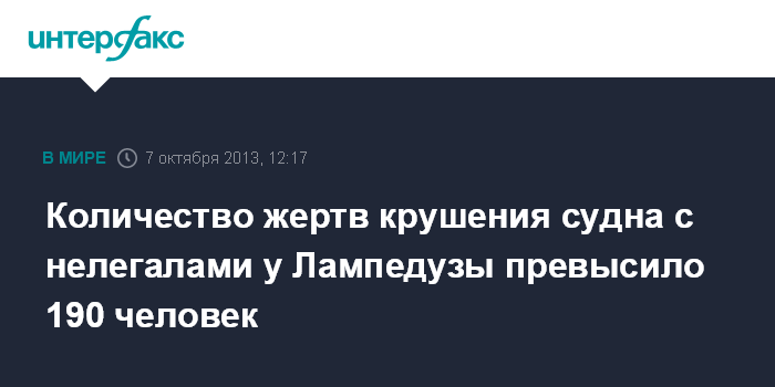 Количество жертв крушения судна с нелегалами у Лампедузы превысило 190 человек
