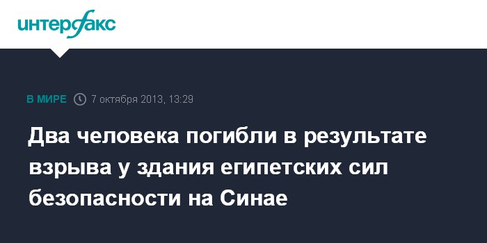 Два человека погибли в результате взрыва у здания египетских сил безопасности на Синае