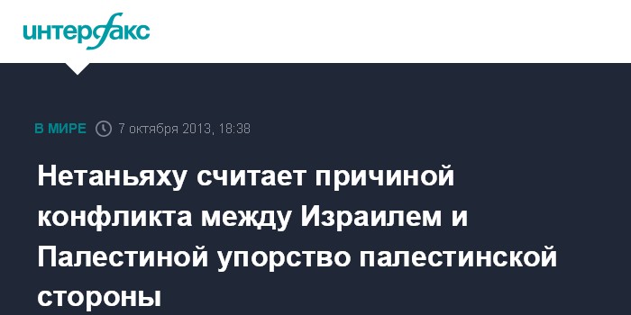 Нетаньяху считает причиной конфликта между Израилем и Палестиной упорство палестинской стороны