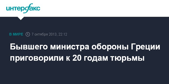 Бывшего министра обороны Греции приговорили к 20 годам тюрьмы